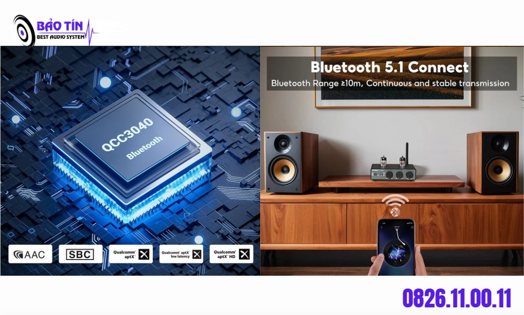 QCC3040 Bluetooth: Phiên bản 5.1, hỗ trợ AAC, SBC, APTX, APTX-LL, APTX-HD