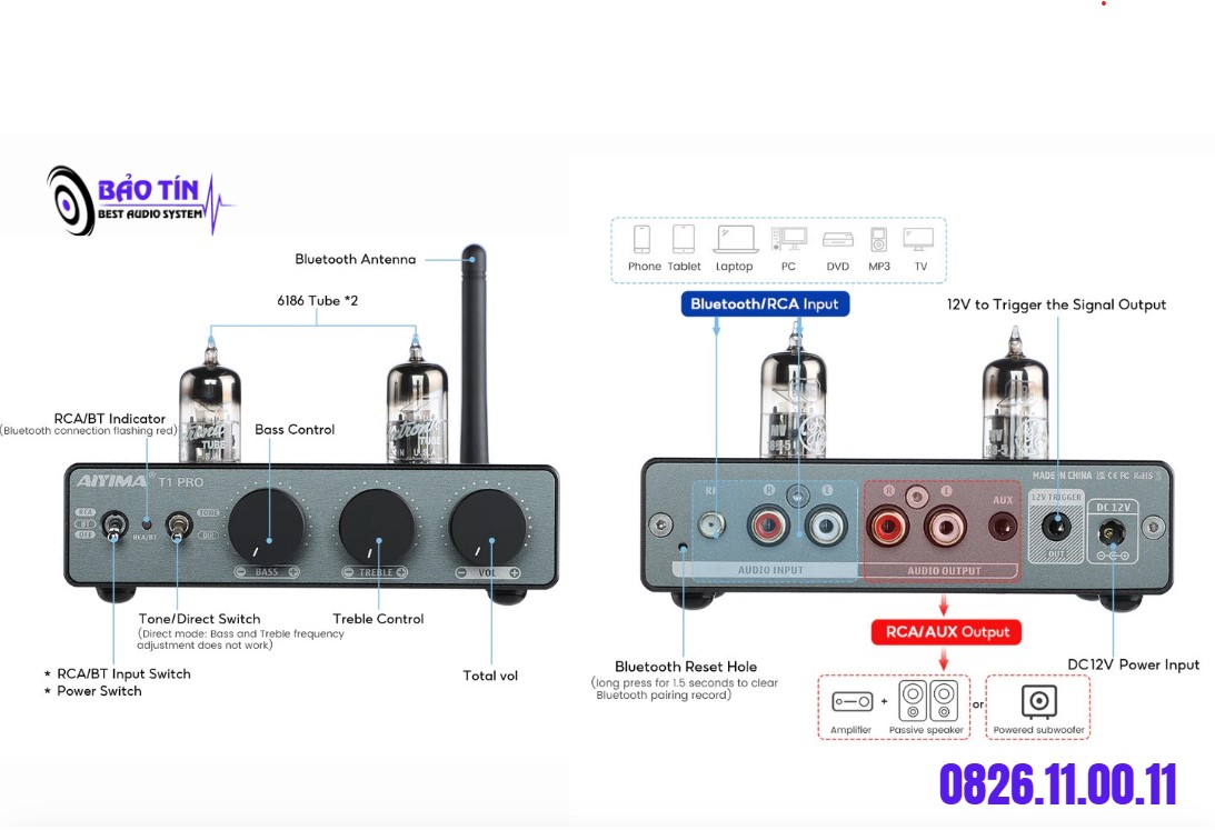 Thiết bị hỗ trợ: điện thoại di động, máy tính bảng, máy tính, MP3, TV, v.v. Bộ tiền khuếch đại đèn này không hỗ trợ phono.