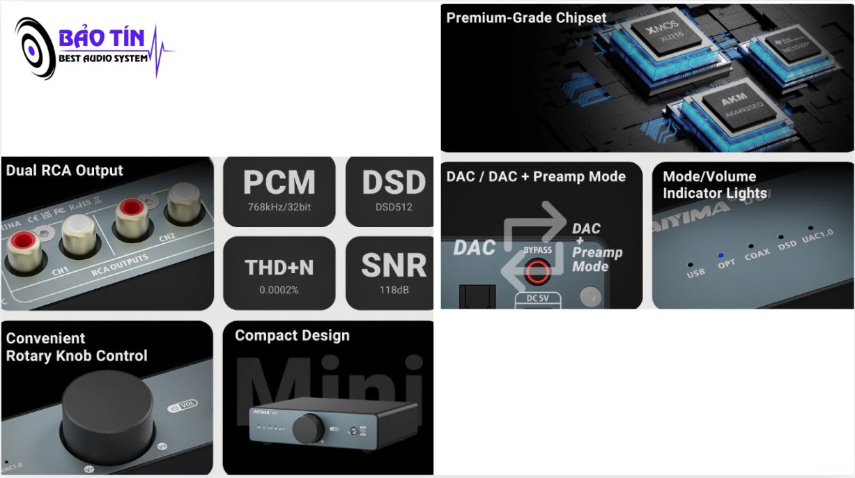 USB PCM 768kHz/32bit DSD512 (DoP: 256) Quang/Đồng truc PCM 192kHz/24bit |