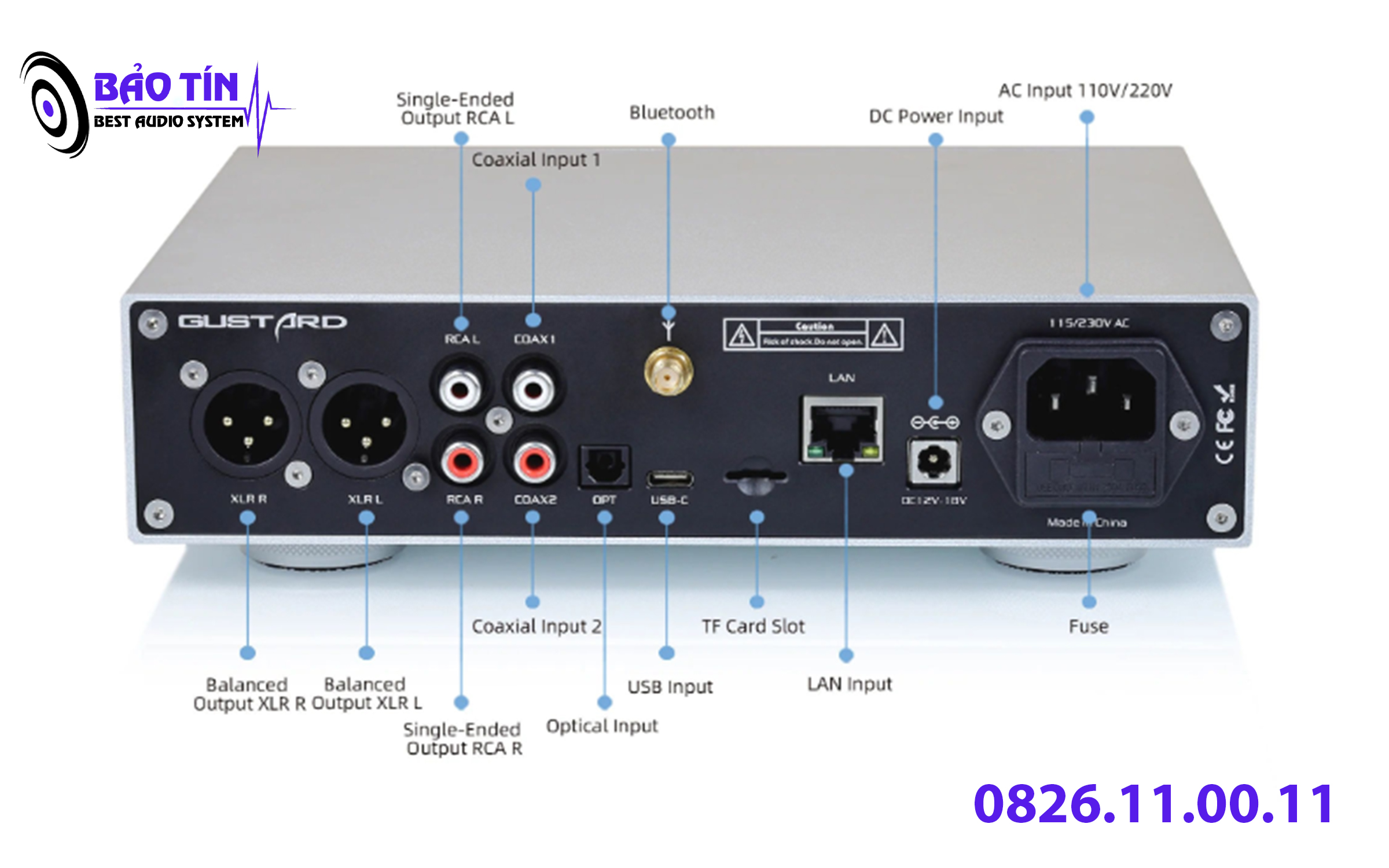 - Đồng trục / Quang học: Tương thích với các luồng PCM lên đến 24-bit 192kHz và DSD DoP64.