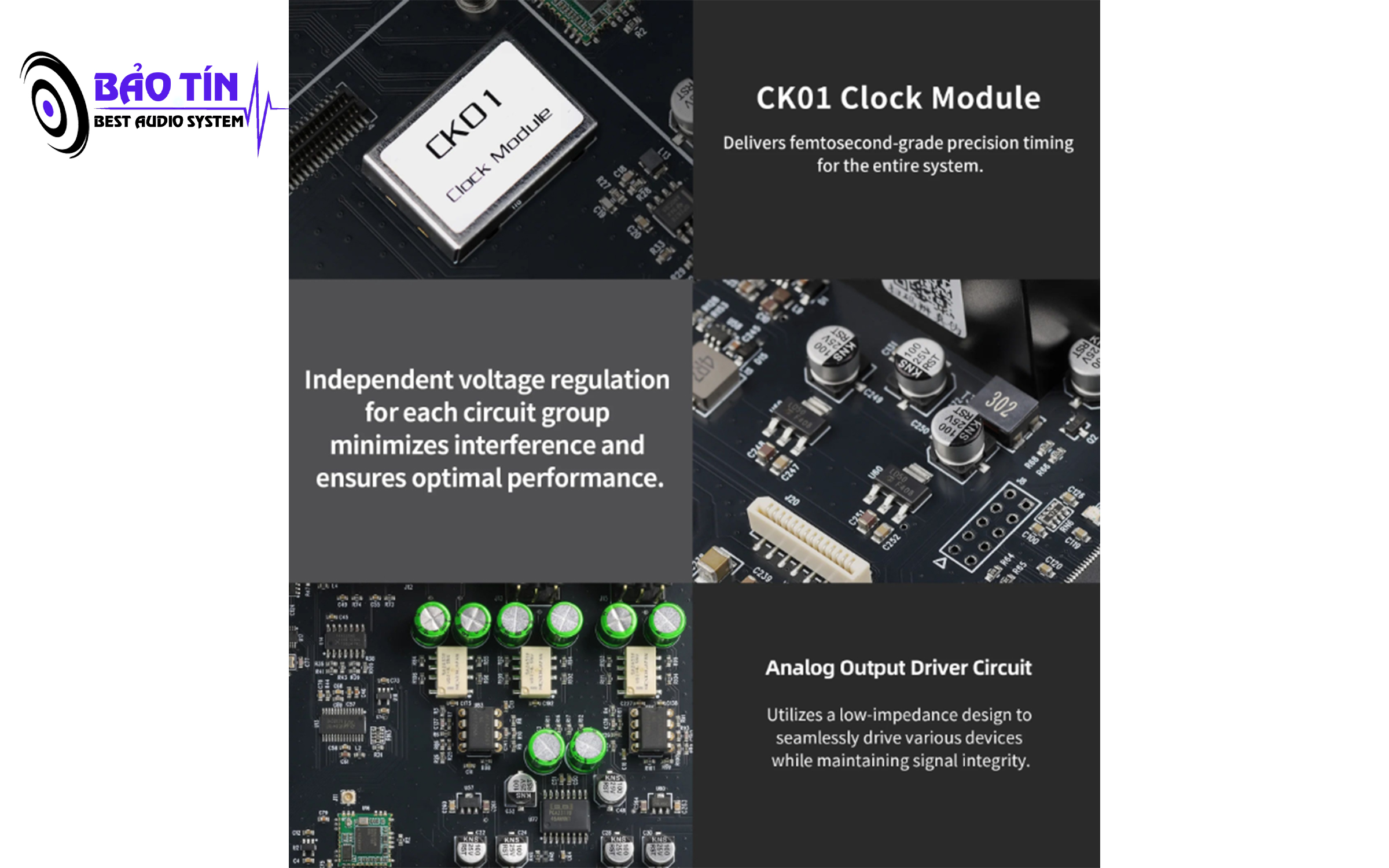 Đặc biệt là lối bố trí linh kiện bên trong theo hướng tách biệt các khối xử lý - nguồn - analong giúp giảm nhiễu và tối ưu tín hiệu âm thanh hiệu quả.